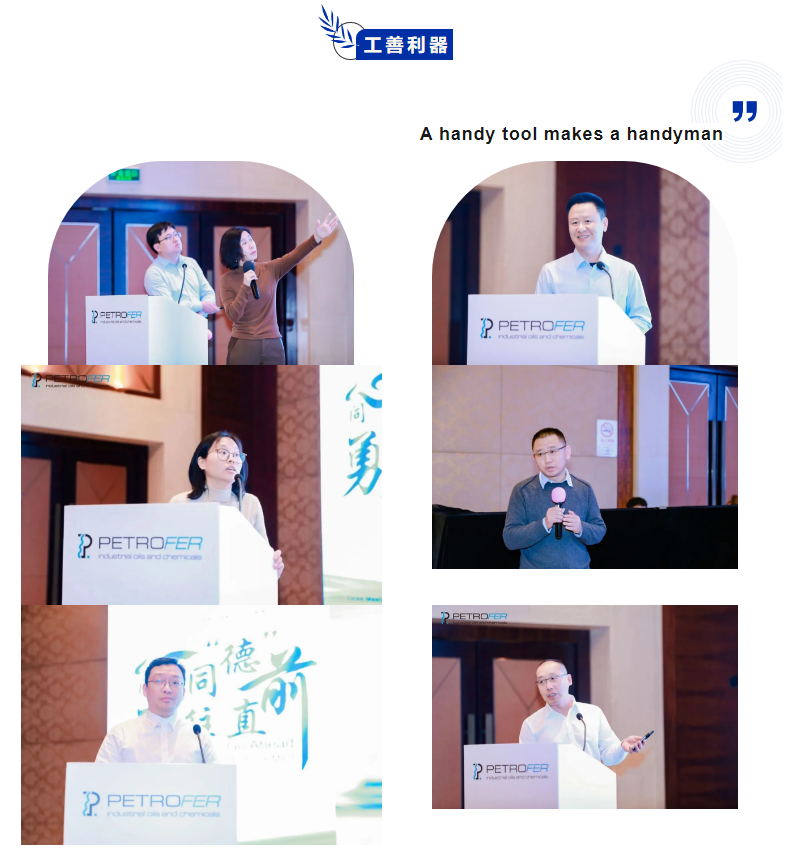 產品技術部李兆楠、戈瑋瑋、闞樹波、王可望等產品經理,分享了德潤寶工業潤滑及造紙化學品產品的概念、主要特點、作用表現、使用推薦等知識經驗。
